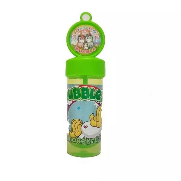 Készítsen gyermeke gyönyörű, színes buborékokat ezzel az unikornis mintás 80 ml-es, szappanfolyadékkal töltött buborékfújóval. A buborékfújó akasztóval is rendelkezik, hogy könnyebb legyen tárolni a játékot.