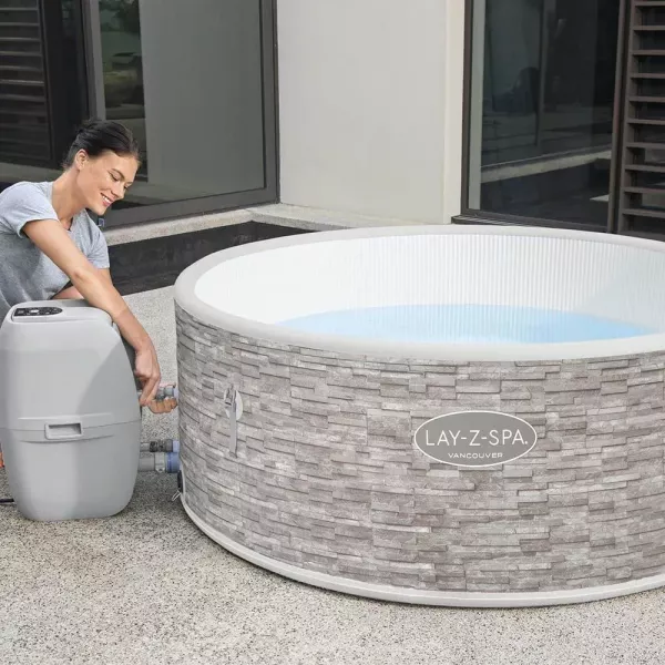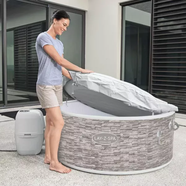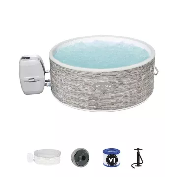 Élvezze a luxus pihenést a Lay-Z-Spa Vancouver AirJet Plus pezsgőfürdővel, amely a stílus és a technológia tökéletes ötvözete. Ez a rendkívül gyorsan telepíthető, hordozható jakuzzi elegáns mintázatával és kompakt kialakításával bármely kert, terasz vagy beltéri helyiség ékköve lehet.