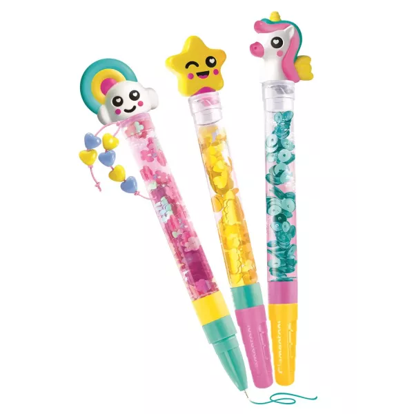 A kreativitás netovábbja ez a tollkészítő szett. A csomag 3 darab különböző színű tollat tartalmaz amelyet a gyerekek saját kedvükre díszíthetnek és dekorálhatnak. A kreatív játék fejleszti a kézügyességet és kreativitást, és nem utolsó sorban hasznos iskolaeszköz készíthető.