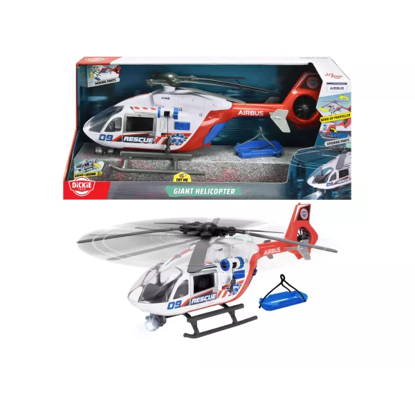 Az Airbus H145 helikopter az élményt fokozza beépített fény- és hanghatásokkal. A gyerekek a helikopter propellerét kézzel feltekerhetik, így az valósághűen forog, míg a nyitható ajtók és hátsó fedél további játékteret nyitnak meg. A kézi csörlő és a mellékelt hordágy segítségével a mentési szituációk teljesen élethűvé válnak.