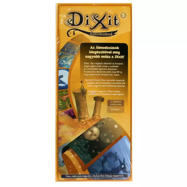 A Dixit 5: Álmodozások kiegészítő nem önálló játék, csupán kiegészítő a Dixit és Dixit Odüsszeia alapjátékokhoz.
