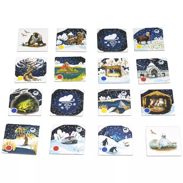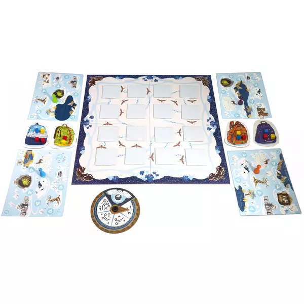 Tartalom: 1 játéktábla, 18 memórialap, 1 hóviharjelző, 4 hátizsák, 4 térkép, 4 segédlap, 24 színes fakocka, 4 bábu, játékszabály