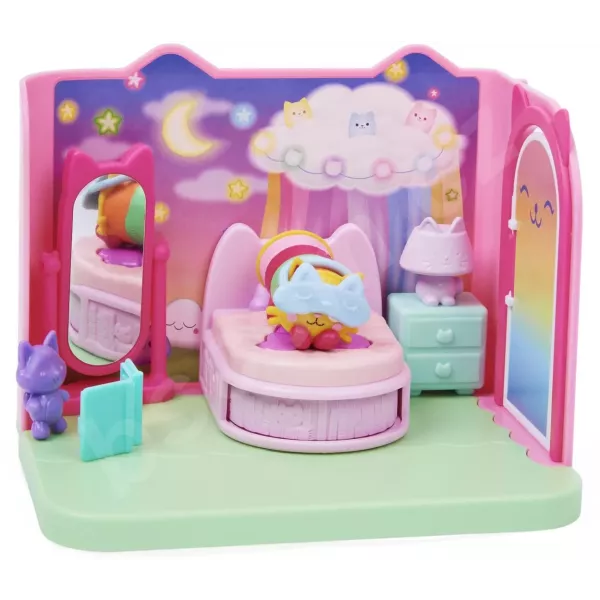 A gyerekek eltölthetnek egy pihentető éjszakát Párnacicával a Sweet Dreams hálószobában. A deluxe Gabi babaháza játékkészlet tele van mókás részletekkel és felfedezésre váró meglepetésekkel, amelyek életre keltik a varázslatos szobát a sorozatból. A dobozban egy gyűjthető Párnacica figura, három bútordarab, egy plüss cica kiegészítő, valamint két Dollhouse Delivery küldemény található.