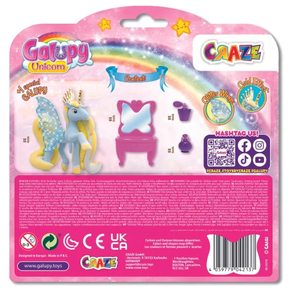 Tartalom: 1 db különleges Galupy unikornis, 1 db fésülködőasztal, 2 db kiegészítő.