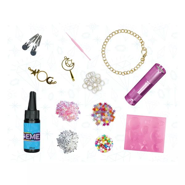 A Gemex szettekkel a gyerekek egy egészen új szintre emelhetik az ékszerkészítést - gélből alkothatnak valódi ékszereket! A varázslat a gyerekek szeme előtt zajlik le, és garantált, hogy minden ékszer egyedi és különleges lesz, nincs két egyforma. A szett segítségével akár 50 ékszer is elkészíthető.