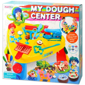 Ez a nagyszerű Playgo gyurmakészlet többfunkciós munkaasztalkával többórás, kreatív kikapcsolódást nyújt a gyerekek részére. A készlethez tartozó gyurmaszerszámokkal könnyedén készíthetnek a gyerekek különböző gyurmaédességeket, legyen az gofri, fánk, vagy fagyi kehely, de gyurmacicát, vagy kutyust is egyszerűen formázhatnak segítségével. A különleges fodrász székkel mókás hajat préselhetnek a mellékelt műanyag kisfiú vagy kislány figurának, melyet utána formára is igazíthatnak. A színes, puha gyurmákat formázva a gyerekek játékosan fejlesztik kézügyességüket és kreativitásukat. A 3db egyszerűen beilleszthető, könnyű láb stabil tartást biztosít az asztalkának, és praktikus tárolóhelyet nyújt 6 tégely gyurmának. Csomagolási méretek: 42 x 42 x 14 cm.