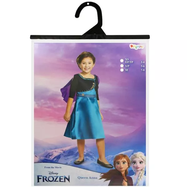 A lányok most belebújhatnak kedvenc Disney Jégvarázs hercegnőjük, Anna bőrébe. Csinos és kényelmes jelmez farsangra, Halloween-ra, beöltözős bulira vagy csak úgy, otthoni szerepjátékhoz.