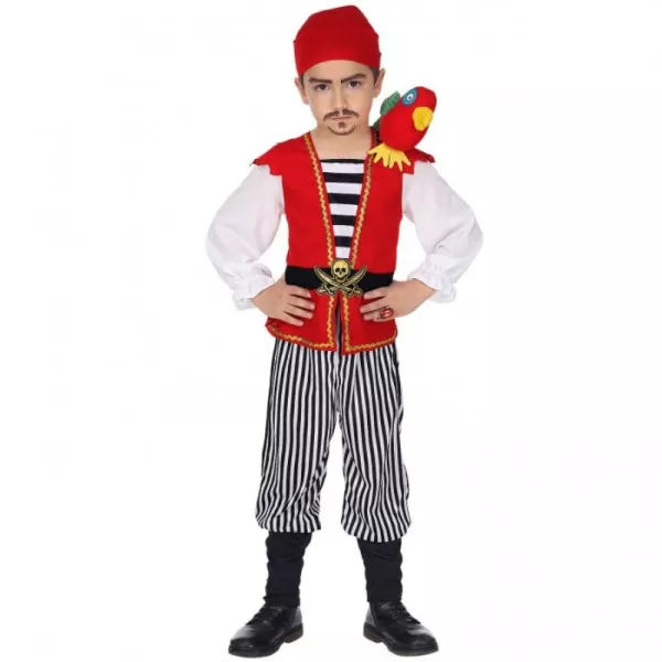 Ezzel a 104-es méretű kalózjelmezzel a gyerekek igazi tengeri csibészeknek érezhetik magukat. A szettben az ing, a mellény, a hozzá tartozó öv és a nadrág mellett egy aranyos papagáj is található, aki a kis kalóz vállán csücsülve nézi majd végig a kincskereső kalandokat, a tengeri csatát - vagy épp a jelmezversenyt. Vajon ki lesz a tengerek legnagyobb zsiványa?