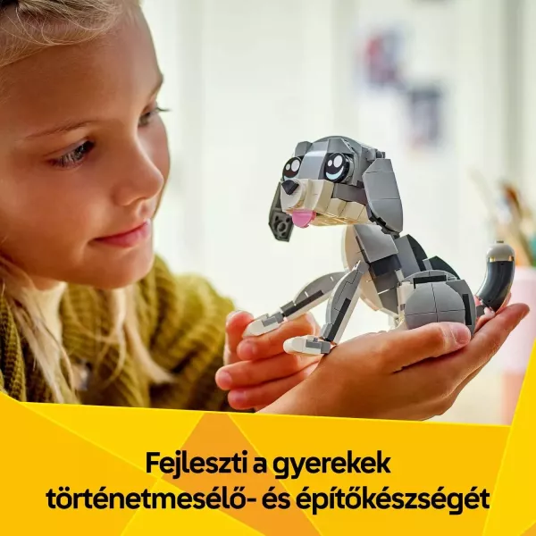 A lányok és fiúk 3 különböző, állatos LEGO játékkészletet építhetnek meg ugyanazokból a kockákból: egy beállítható játék macskát, aki ülni, állni és csapni tud; egy beállítható, aranyos kutyafigurát játék csonttal; és egy játék galambot kenyérmorzsával. Mindhárom jelenet remek LEGO ajándék a gyerekeknek, hiszen vidáman játszhatnak velük, és ki is állíthatják őket.