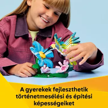 Építhetnek egy beállítható kolibrit dinamikus, repülő pózban, és egy gyönyörű, virágokkal díszített állványra helyezhetik. Majd átépíthetik egy virágokkal díszített állványon álló pillangóvá vagy egy trópusi hallá, amelyhez egy vízi növényekkel díszített állvány tartozik. Ha megépültek a modellek, és véget ért a játék, akkor bármelyik modellt büszkén kiállíthatod, hiszen egy csodás, természetközeli dekoráció válik belőle.