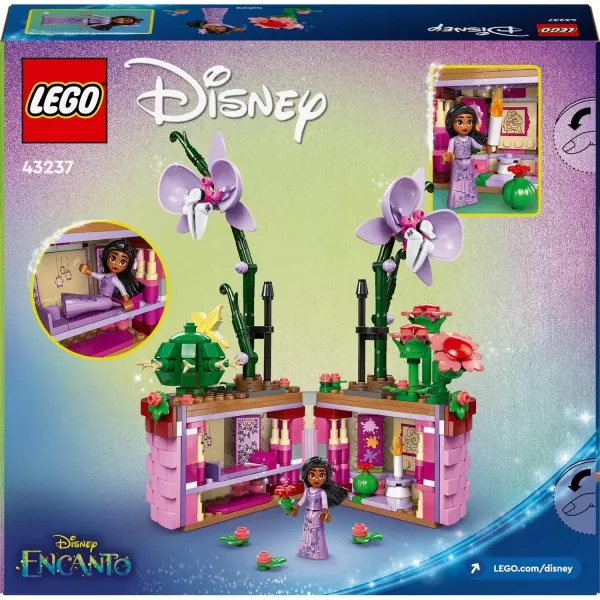 Tartalmaz egy csuklópántos, kosaras virágcserepet, amelyet ha felnyitsz, egy titkos helyiségre bukkansz, amely tele van szórakoztató filmes részletekkel, továbbá tartalmaz egy LEGO ǀ Disney Isabela minibaba-figurát, valamint orchidea és kaktusz megépíthető LEGO játék virágokat, amelyekből gyönyörű kiállítási darabot lehet készíteni, ha le van csukva a cserép.