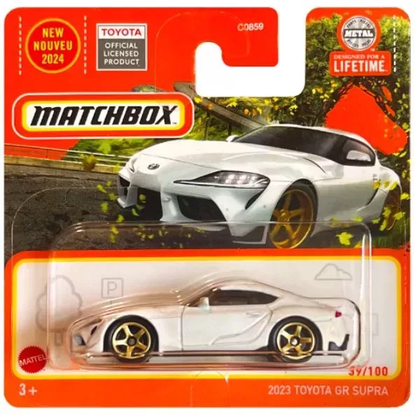 Matchbox kisautó - 2023 Toyota GR Supra: egy részletgazdag és hivatalosan licencelt játékautó, amely a valós modell hű mását adja vissza.