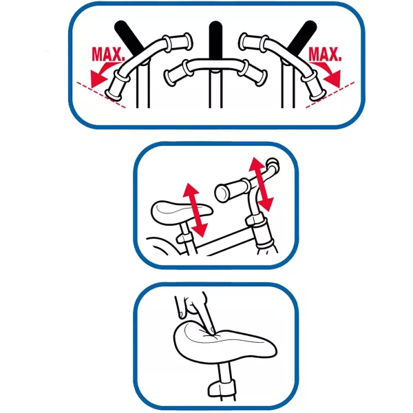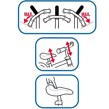 A bringa váza könnyű, de tartós és strapabíró, a nyereg és a kormány állítható, így mindenki számára megtalálható a tökéletes beállítás. A habszivacs nyereg extra kényelmet biztosít, a fogantyúkat pedig a biztonság érdekében becsípődésgátló fogantyúval látták el. A kormányszög korlátozható.