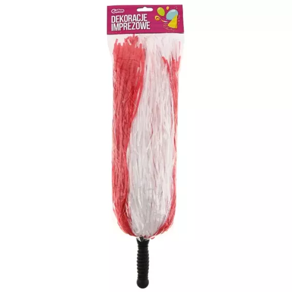 Egy szurkolólánynak elengedhetetlen kelléke a pom-pom. Ez a piros-fehér színben pompázó, műanyag szálakból készült, műanyag fogantyúval ellátott jelmezkiegészítő tökéletes választás farsangra, Halloweenre vagy akár egy játszós délutánhoz is.