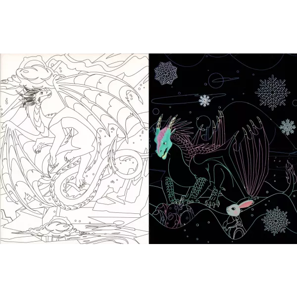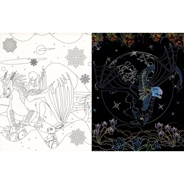 Fedezd fel a sárkányok csodálatos világát! A mellékelt pálcával kapard le a fekete réteget, és meglátod, milyen csodás, színes világ tárul eléd a lapokon! Emellett a színezésre váró oldalakon te magad is létrehozhatod a saját verziódat. Ha kész a mű, akár ki is emelheted a lapot, és odaadhatod egy barátodnak...