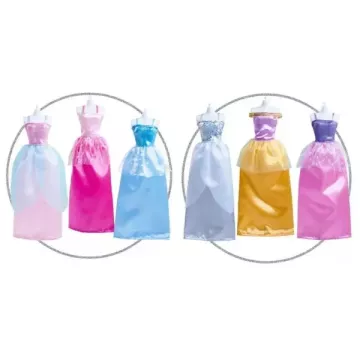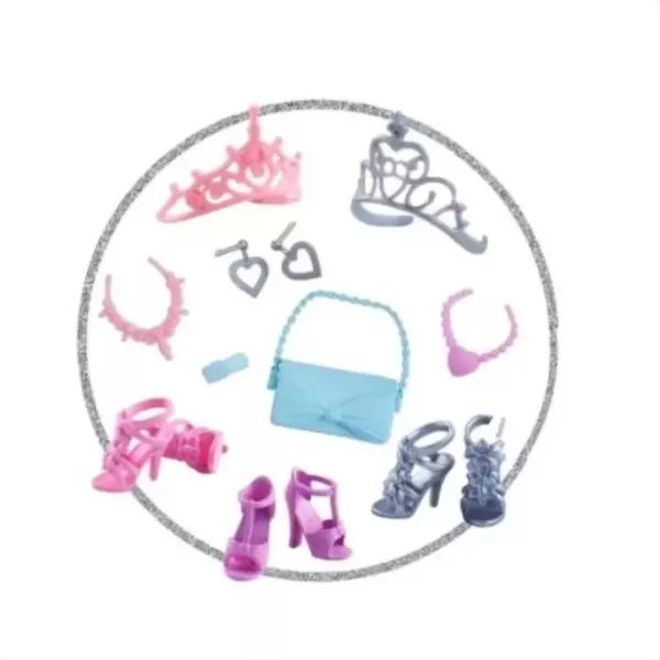 A szett több mint 23 kiegészítőt tartalmaz. A felső részen láthatók a különböző cipők, ékszerek, tiarák és táskák, amelyekkel a gyerekek kedvük szerint kombinálhatják az öltözékeket. A „Mix & Match” koncepció lényege, hogy a ruhák és kiegészítők szabadon variálhatók, így szinte végtelen számú megjelenés hozható létre.