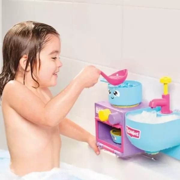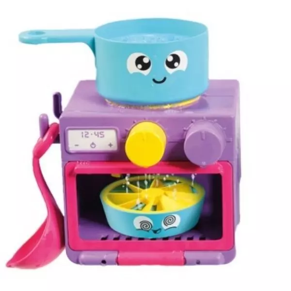 Ezzel a buborékkészítő játékkészlettel a kis kukták elkészíthetik a játék vacsorát, majd el is mosogathatnak a habzó mosogatóban. A csap vízpumpával működik, ami összekapcsolható a sütő- és főzőlappal. A sárga gomb megnyomásával indítható el a buborékozás - csak habfürdőt kell önteni hozzá (nem tartozék), és már indulhat is a móka! A sütemény forma a sütőbe helyezve forogni kezd a víz hatására.