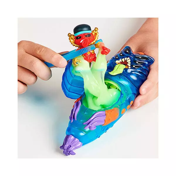 Mentőakcióra fel! Az Alienek megették a harcosokat, ki kell őket szabadítani, míg nem késő! El kell kapni az Alient és felboncolni, hogy a harcosok megmenekülhessenek gyomruk fogságából! Az undorító trutyi számos menő kiegészítőt rejt az elnyelt vadász mellett. A kicsomagolás élménye még sosem volt ilyen izgalmas és mókás a fiúk számára, akiknek extra bonceszköz jár a szettekhez, hogy könnyebb legyen feltúrni a belsőségeket a kincsek után. A szörnyecskék többfélék lehetnek, zöld, piros vagy kék. A feltüntetett ár 1 db termékre vonatkozik, melyet véletlenszerű változatban szállítunk.
